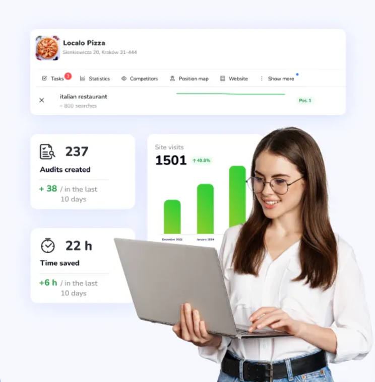 Automate and scale Local SEO services, deliver quick results and present them in an understandable way. Build relationships with clients and improve your upselling potential.